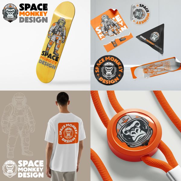 Darren, approached us for a fresh identity for his company, Space Monkey Design. He wanted something distinctive that felt rooted in his personality and creative work. After exploring a range of early sketches, we developed a character-led mark featuring a gorilla in a space helmet. A confident, memorable symbol that captured both strength and imagination. The brand uses a striking palette of black, orange, and grey, paired with bold typography and playful applications across touch points. The outcome is a standout identity that gives Space Monkey Design a strong visual presence and reflects Darren’s creative edge.